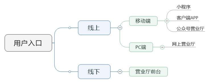 和所有电商平台一样,用户的数据从来都来自于用户自己操作(eg:选择产品、输入信息),操作入口包括:小程序、客户端APP、公众号营业厅(一般是嵌入H5页面,单点跳转)、网厅和线下营业厅,入口不同,但业务流程和数据流转并无二致。