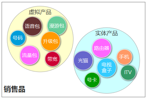 稍微提一下,与一般商品略有区别,运营商的销售品是由多个产品组成的。包括虚拟产品(也叫数字产品)和实体产品。