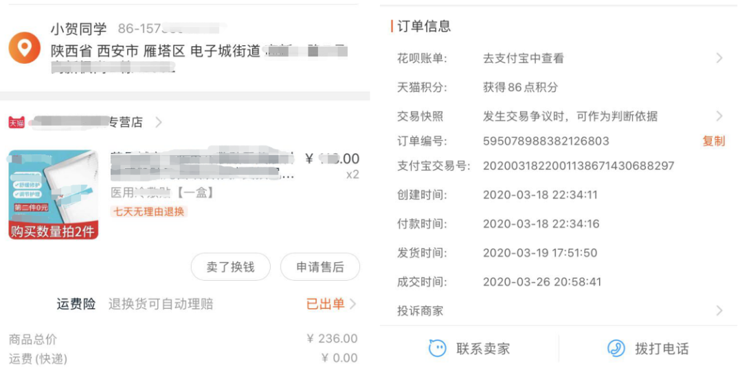 4)物流信息:发货时间、物流单号、物流轨迹、快递人员联系方式