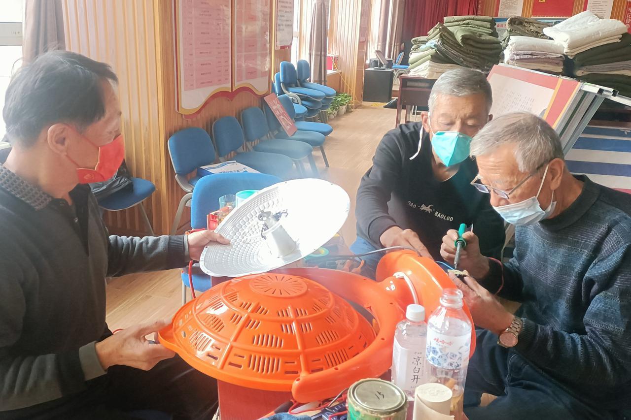 居民自己动手维修取暖器。