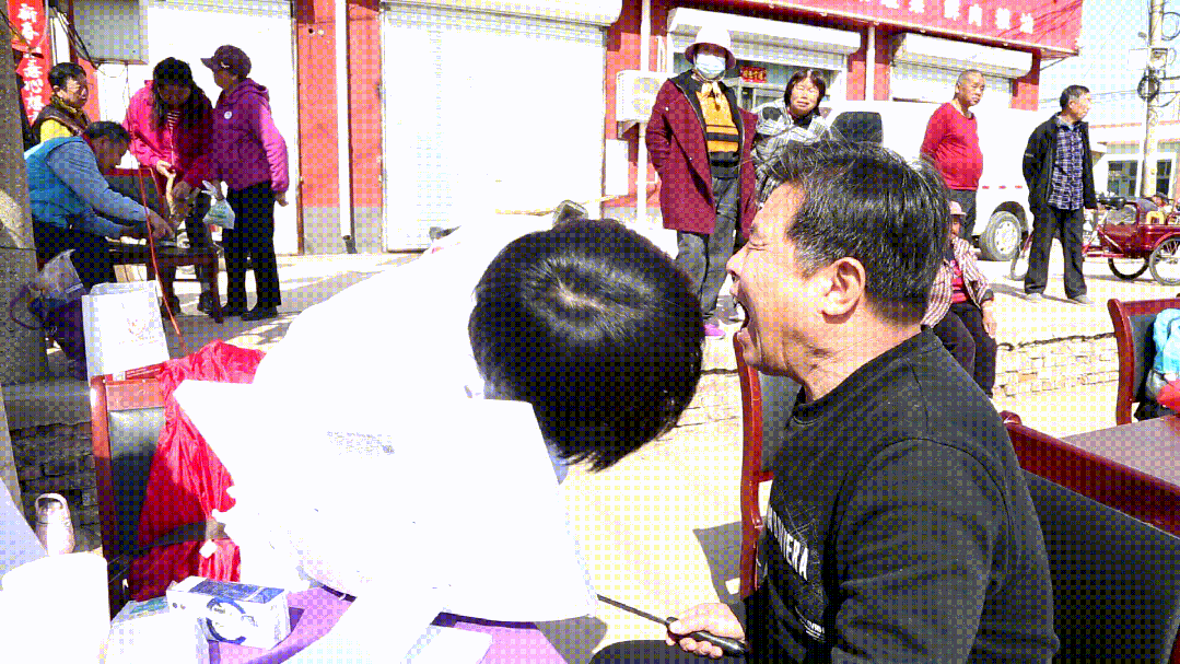 “大叔,我们这是免费义诊,可以给您看看牙齿情况。”
