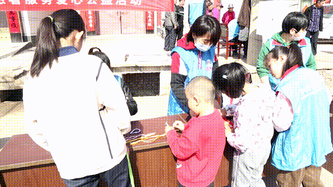 到现场参与志愿服务项目的村民,以老年人居多,也有宝妈带着宝宝一块过来,现场十分热闹。“阿姨,这是什么呀?”