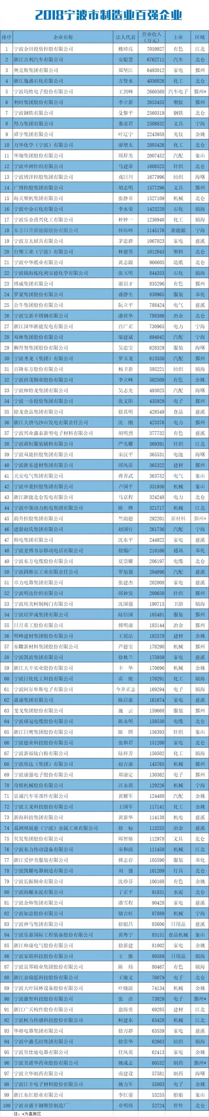 榜单同时揭示出,宁波大力培育的先进制造业企业,近两年焕发出了增长新动能,可以说已经成为宁波经济发展最重要的一支力量——在今年综合百强中,制造业企业入围数54家,扛起了半壁江山。