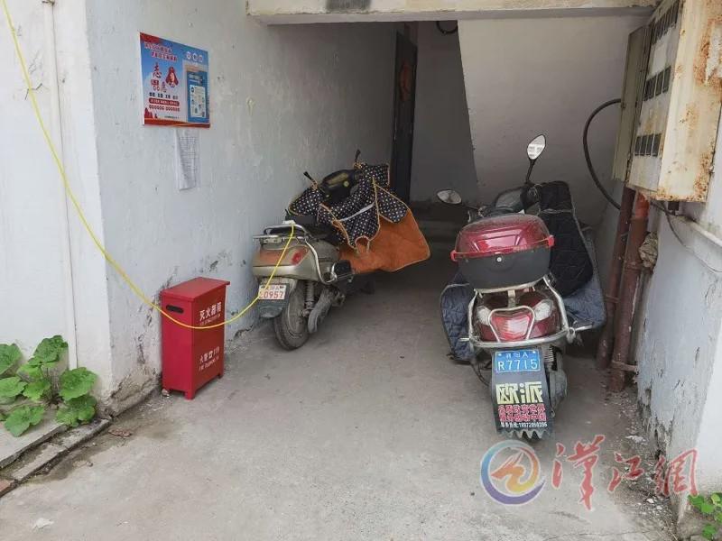 ↑在宏发小区,有居民将电动车停在楼道内,且存在“飞线”充电现象。全媒体记者 周宁 摄