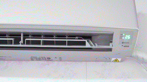 因为空调是通过导风口实现的上下左右的风向调节,也可以选择自动调节,松下 D13KP20N 的自动调节变化非常的慢,下图中的动图是加速5倍之后的效果,主要是给大家看看水平方向的活动幅度还是很大的,可以直接向下大概45°。