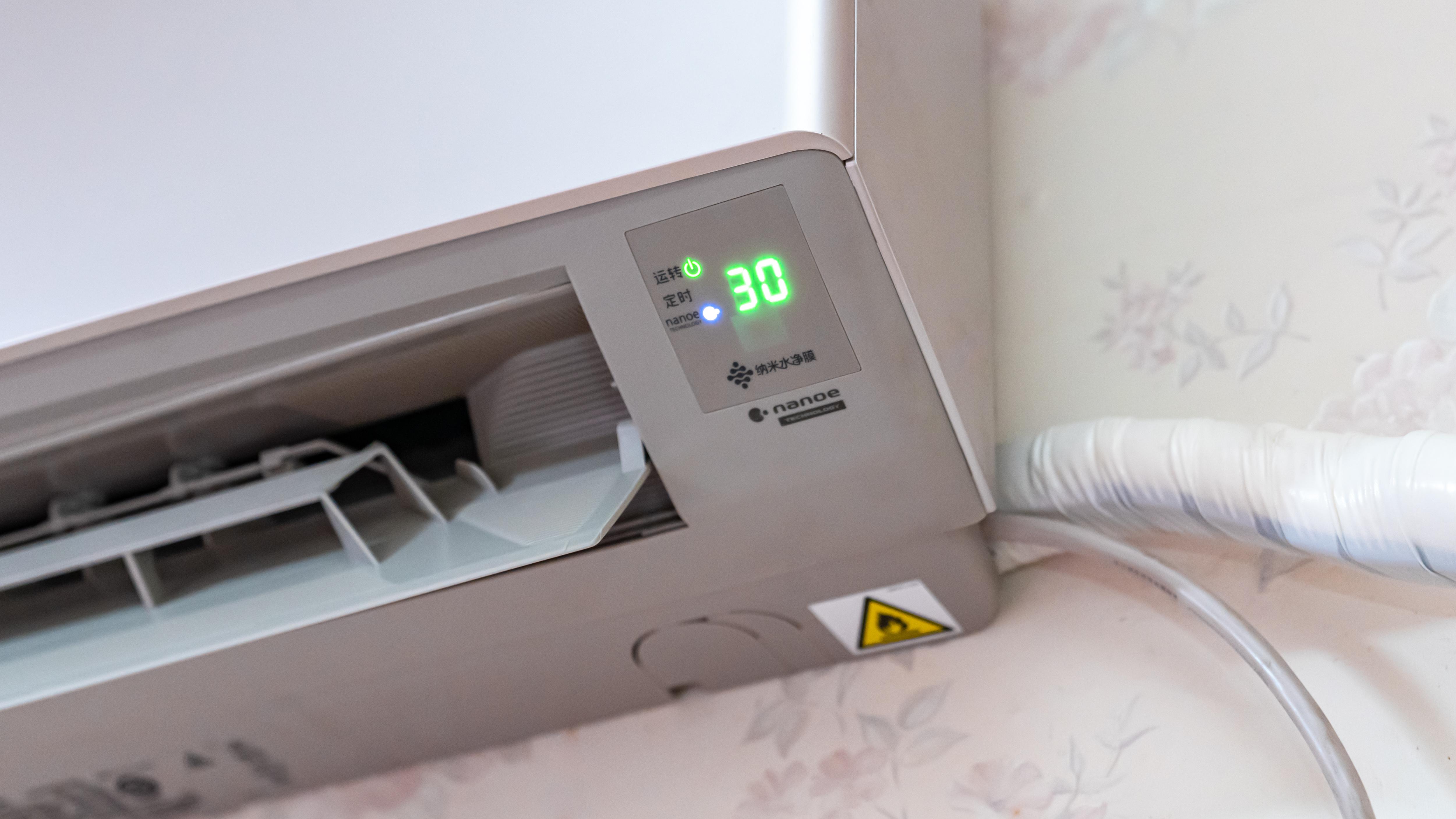 最后,在空调内机的右侧底部是显示区域,没想到居然放到了这里,我还以为会放在前置面板,不过这种隐藏式设计不会破坏整体的美感。