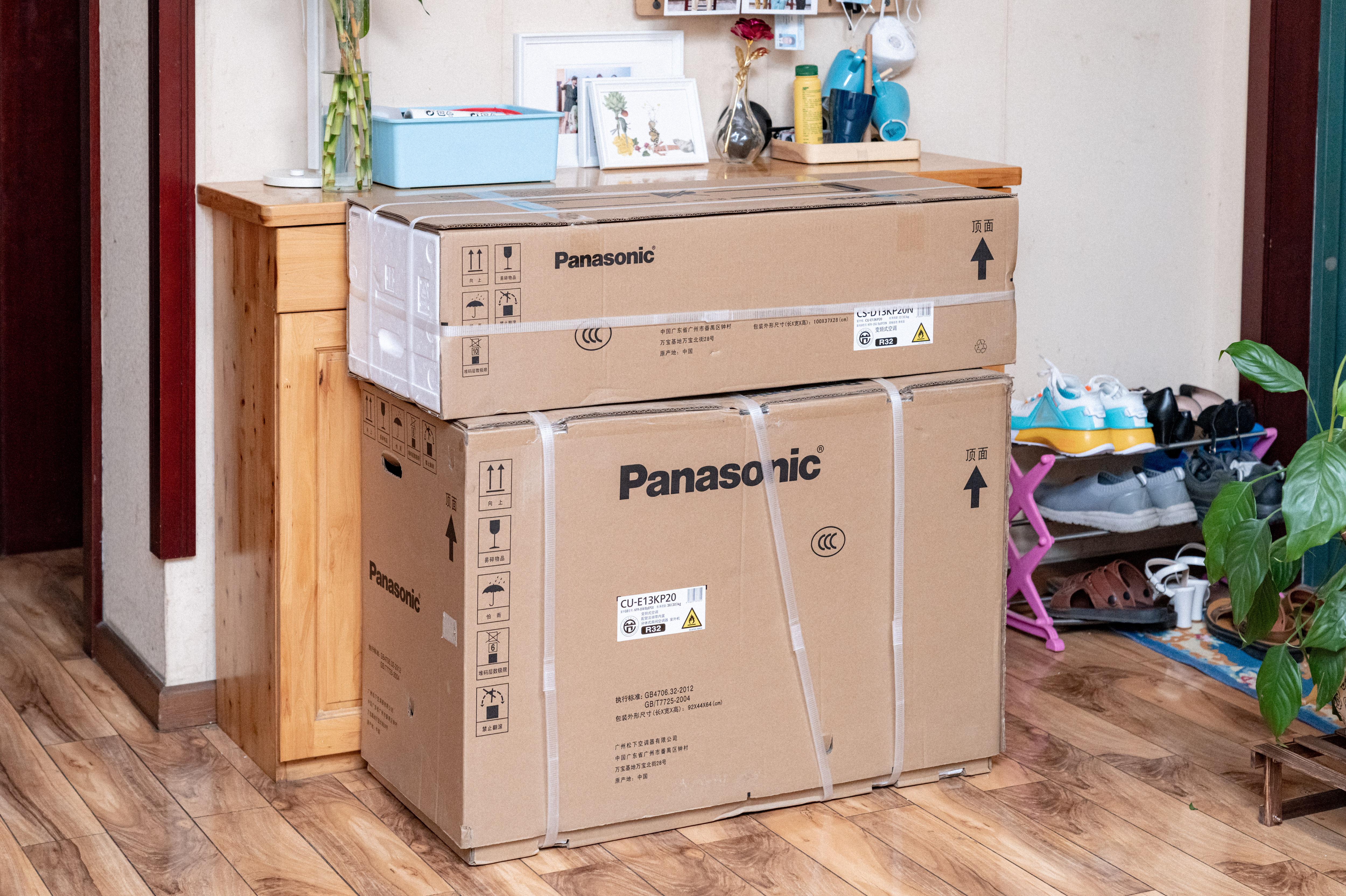 送货上门的小哥和我一起驮上来两个包装箱,从体积上面就可以看出分别是室外机和室内机,外机是从顶部打开,内机则是从侧面打开,包装也比较到位。