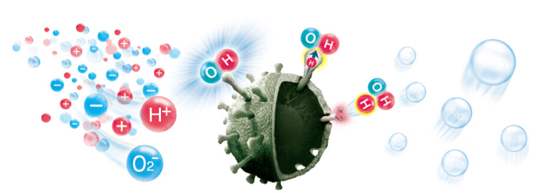 除了前面提到的基础性功能外,松下 D13KP20N 的最大优势就是围绕高浓度 nanoeX 展开,按照官方的说法,“nanoe 是一种纳米级的带电水粒子,其中含有OH自由基会抽出有害物质中的氢元素(H),然后变成纯水(H2O),使细菌中的蛋白质变性,从而使细菌失去活性,抑制其生成。”所以松下在自家的冰箱、洗衣机、空净、空调、洗碗机等多个家电品类中都应用了这项技术。