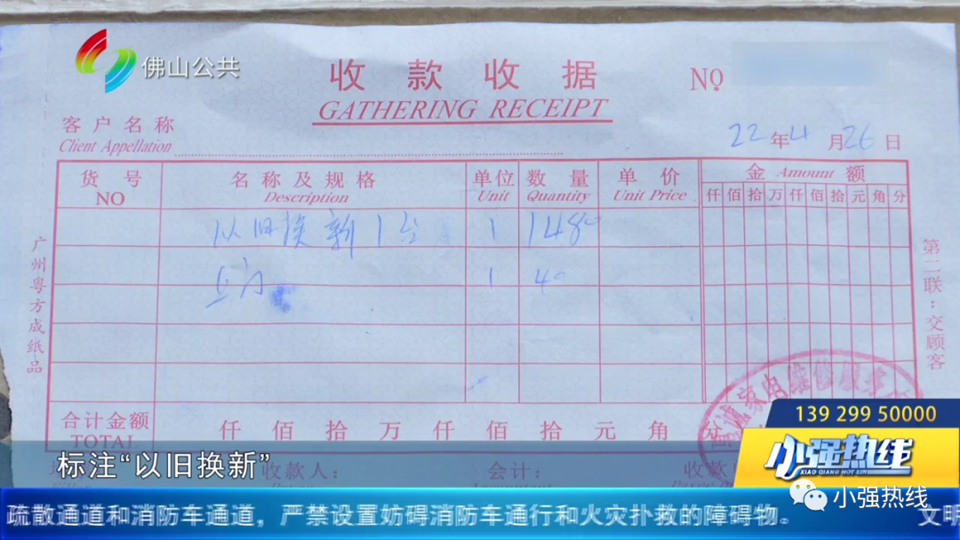 于是,黄女士决定直接买新的消毒柜,向师傅转了1480元加40元的上门费。 当时只有一张小收据,标注“以旧换新”。