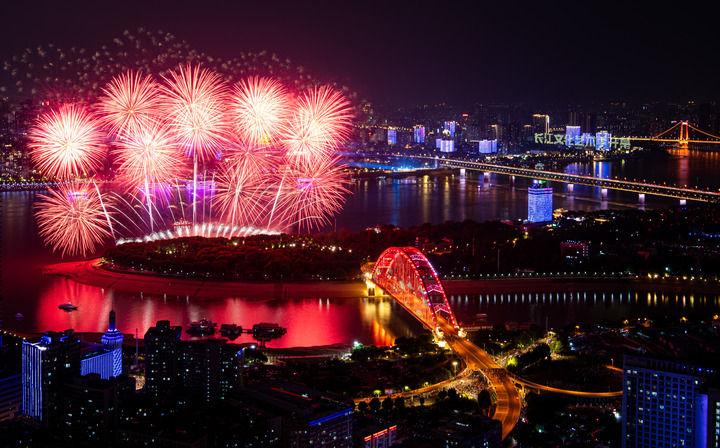 2024年9月14日的烟花表演。当日,首届长江文化艺术季开幕式在武汉举行。新华社记者 肖艺九 摄