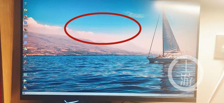 记者从徐先生发来的显示器照片中看到 ,显示器上半部分有两条细小白色条纹,不仔细看,很难发现。