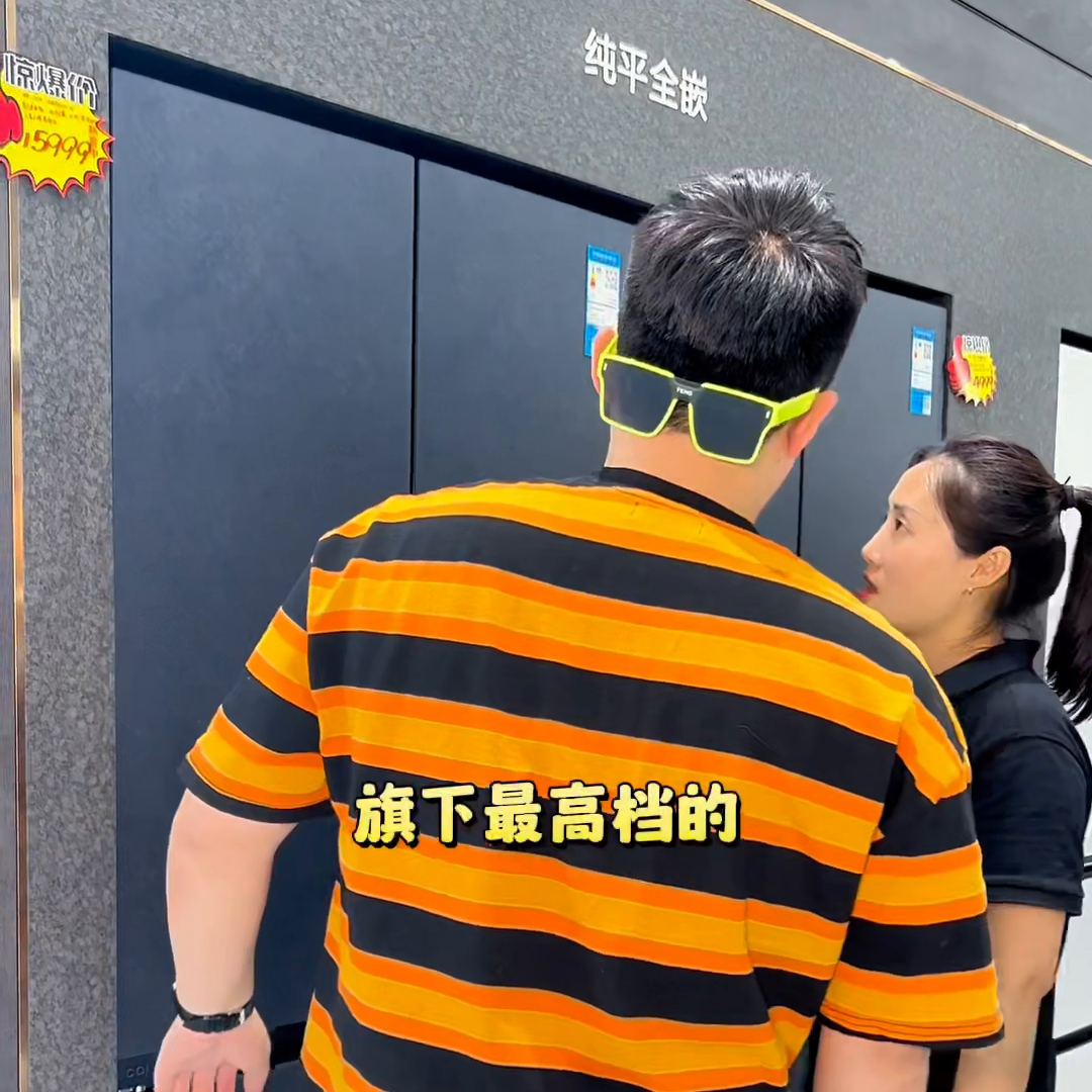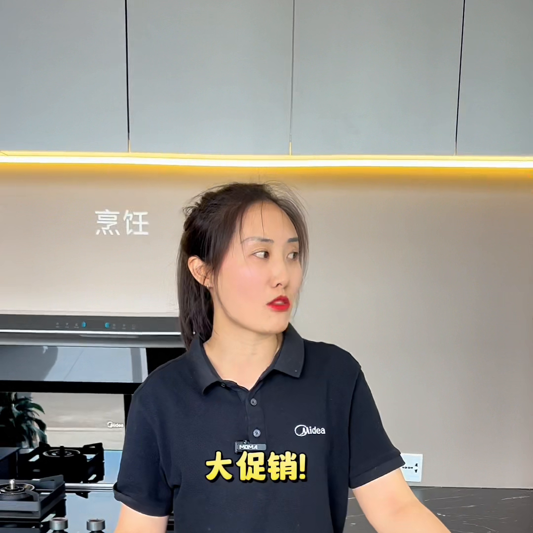 这片区就是美的的烟机跟灶具,这款烟机以前是卖的499,现在就是直降1000,力度是非常大的。这款抽烟机有什么功能?和顶侧双吸的功能。你们这个冰箱要1万多!美的旗下最高档的全前系列的能优惠5000不?这个优惠不了。