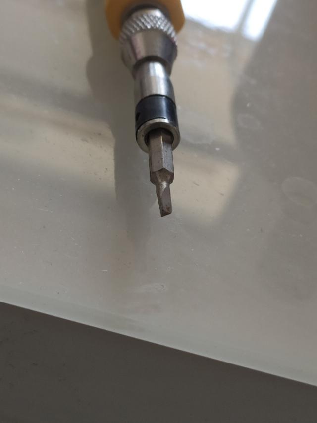 1.可以看到底部就一个内三角螺丝,你需要有这么个特殊的螺丝刀。一般网上买的成套的螺丝刀二三十块钱。
