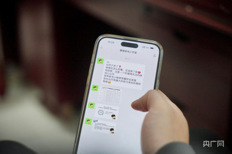雷锋家电工作室开通了微信公众号,方便群众预约维修(央广网发 张志伟 摄)