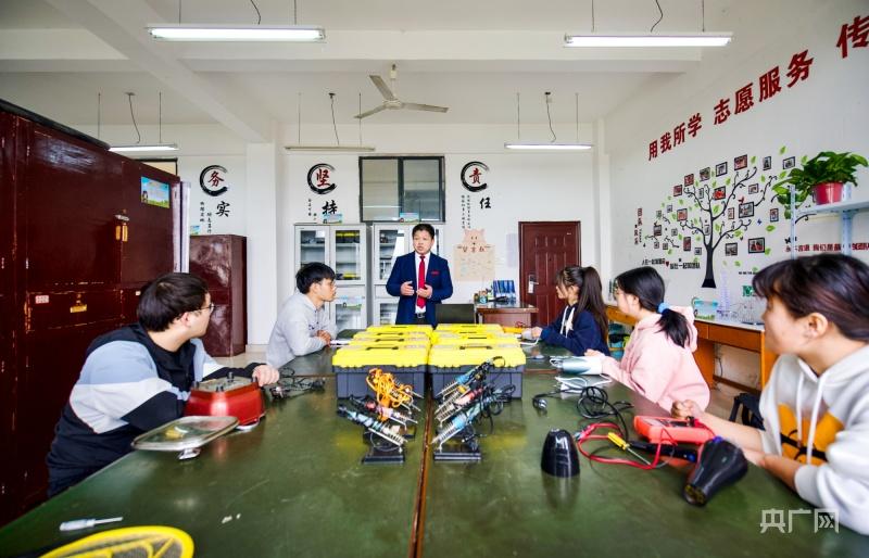 李志强在维修现场指导学生(央广网发 张志伟 摄)