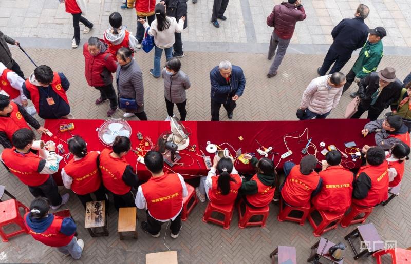 社区里的免费电器维修点站满了有维修需求的居民(央广网发 张志伟 摄)