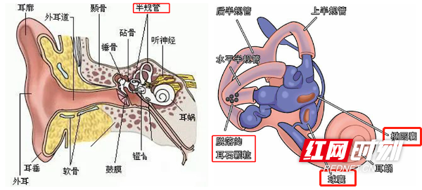 人体左右内耳的三对半规管是感受人体空间位置运动的重要感觉器官。与半规管相连的椭圆囊斑和球囊斑表面有一层胶质膜,在胶质膜表面附着一层用电子显微镜才能看到的微小的碳酸钙结晶,这些小结晶就是耳石。