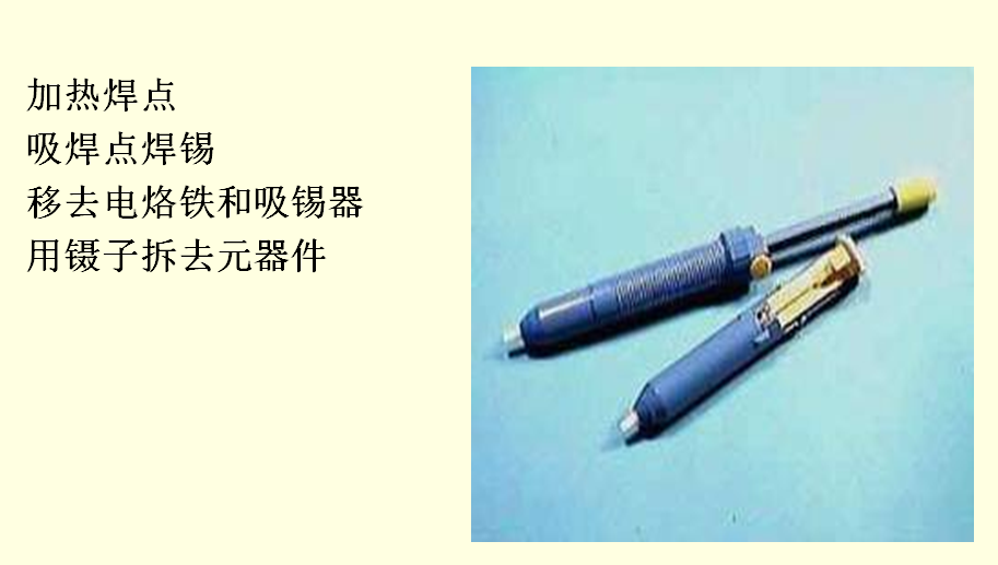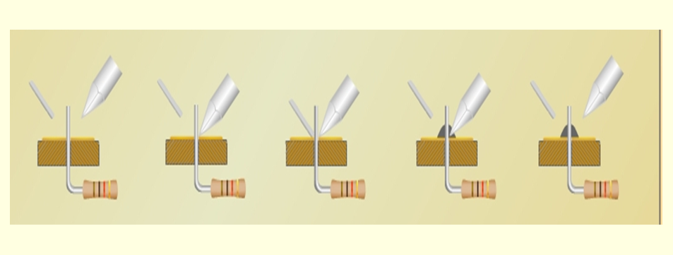 (2)加热焊件:将烙铁头放在工件上进行加热,烙铁头接触热容量较大的焊件。