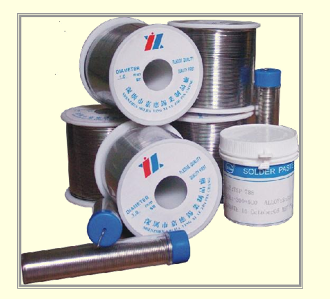 常用的焊锡丝如Sn63Pb37,熔点183℃,Sn62Pb36Ag2,熔点179℃。管状焊锡丝的直径的0.2、0.3、0.4、0.5、0.6、0.8 、1.0 等多种规格。焊接穿孔元件可选用0.5、0.6 的焊锡丝。