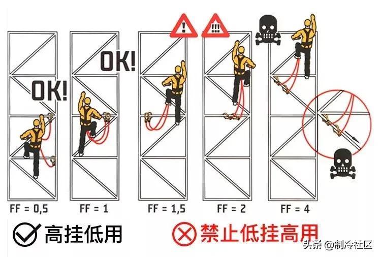 ▲ 安全带的挂点应位于工作平面上方,即采用“高挂低用”的方法, 这样发生坠落时可以减少实际冲击距离,进而减轻对使用者的伤害。