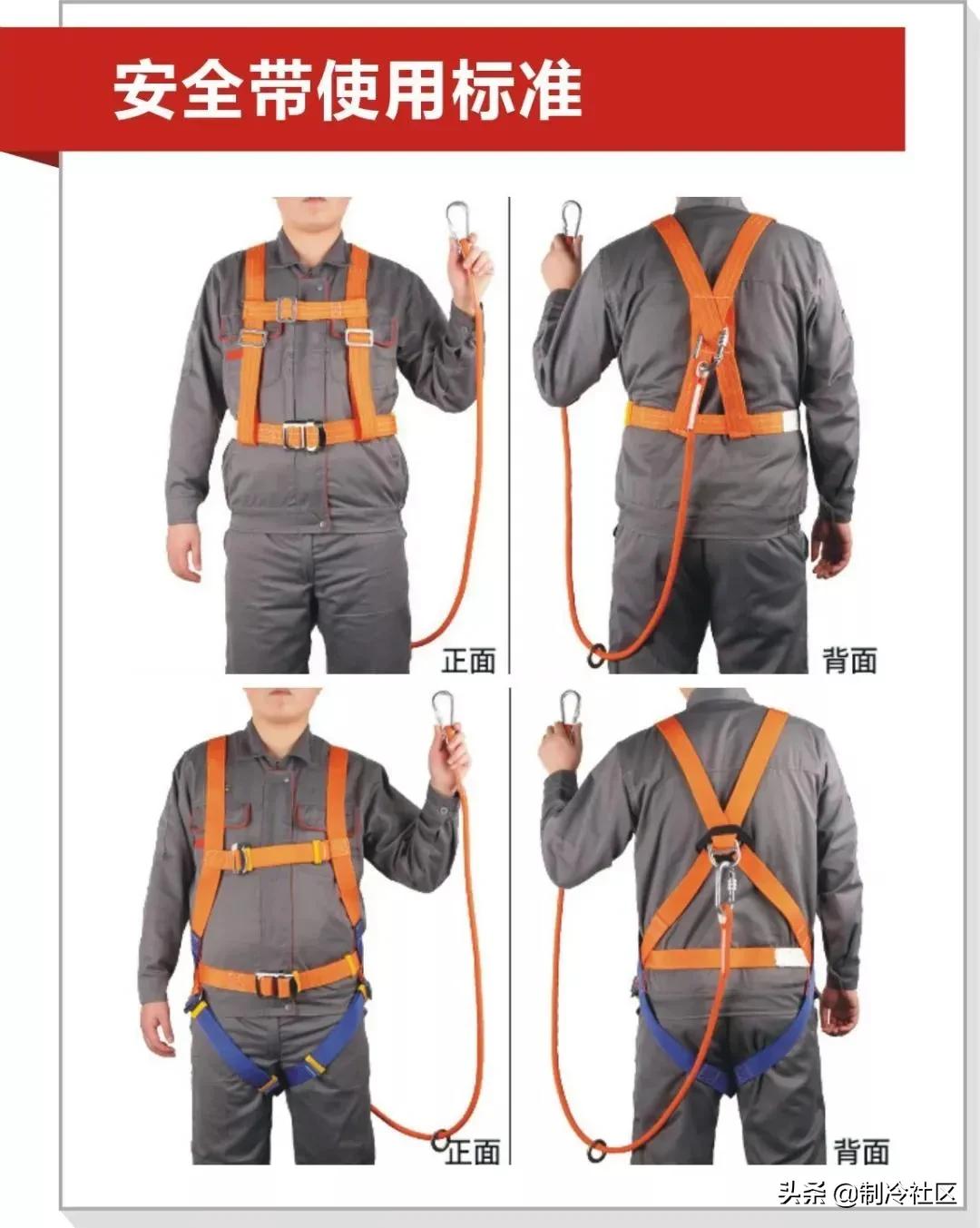 1.严禁在二米以上的高处安装空调外机或进行移机操作时不佩戴安全带。