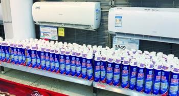 -空调清洗剂优惠力度大,与空调同台促销。吴佳摄