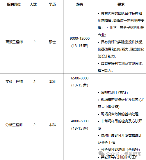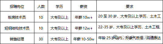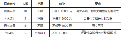 因公司业务发展需要特聘以下岗位