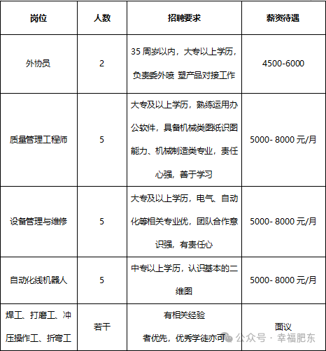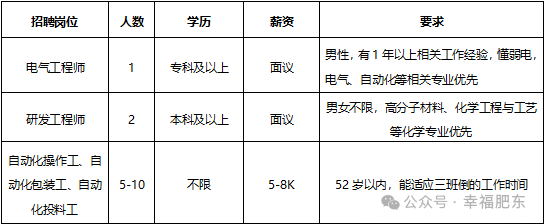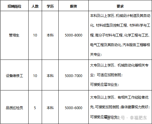 岗位要求:25-35岁,持电工证或制冷证,高中以上学历。