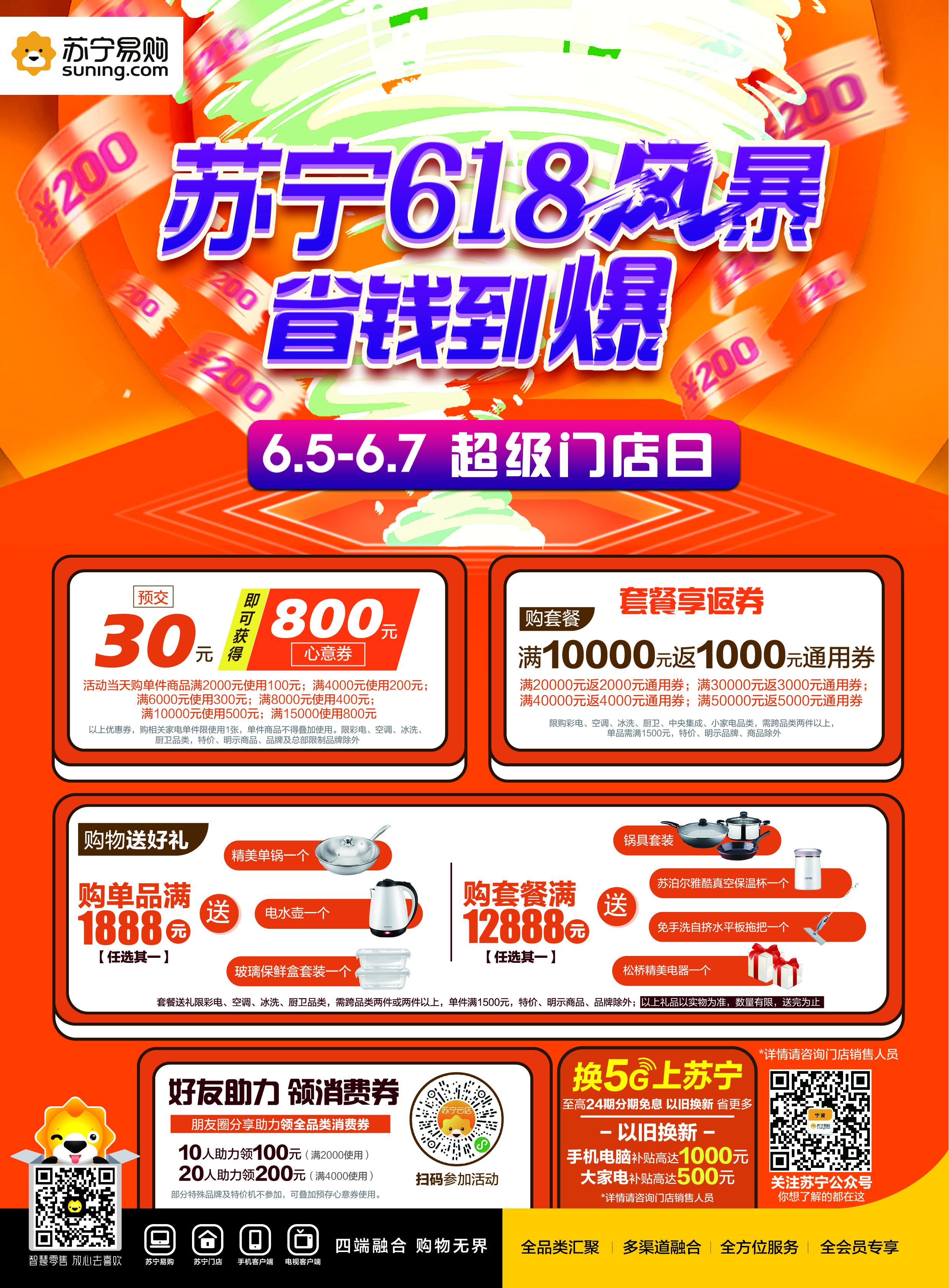 据悉,今年宁波苏宁618风暴,还将通过6月5日—7日“超级门店日”活动,为消费者带来“省钱到爆”的超值体验。618期间,宁波苏宁继续推出专属消费券抵用政策,消费者参加家电以旧换新,最高可享500元购机优惠,还可享受建行分期免息活动。