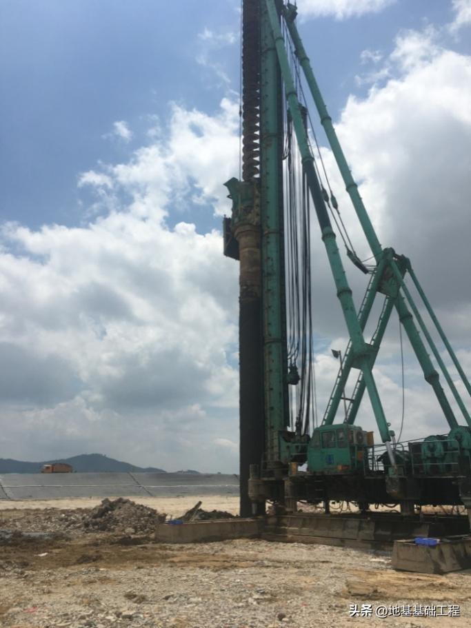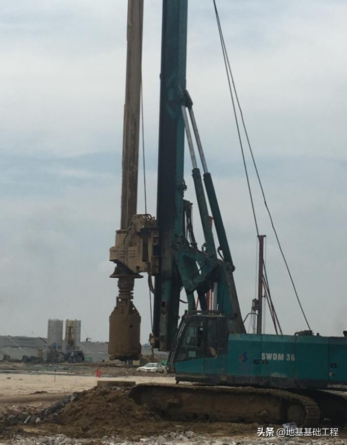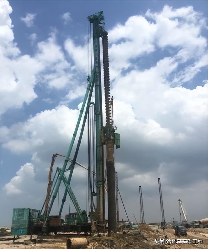 项目施工情况工程于2011年3月开工,由于施工场地位于临海滩涂地区,地层中存在深厚松散砾砂层和淤泥层。为了确保工程顺利施工,项目部放弃原定的旋挖钻机成孔方案,改用长螺旋钻机配合旋挖钻机进行施工。通过运用新技术,成功避免了传统施工方法中经常出现的塌孔等现象,为后序基坑的开挖创造了有利条件。