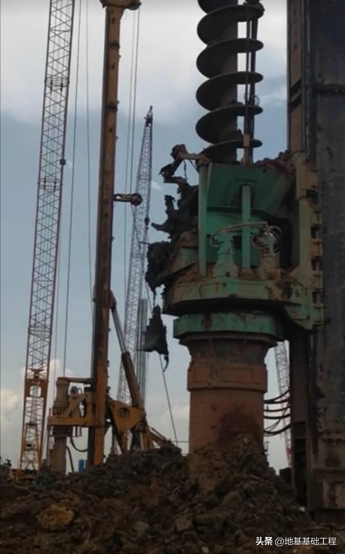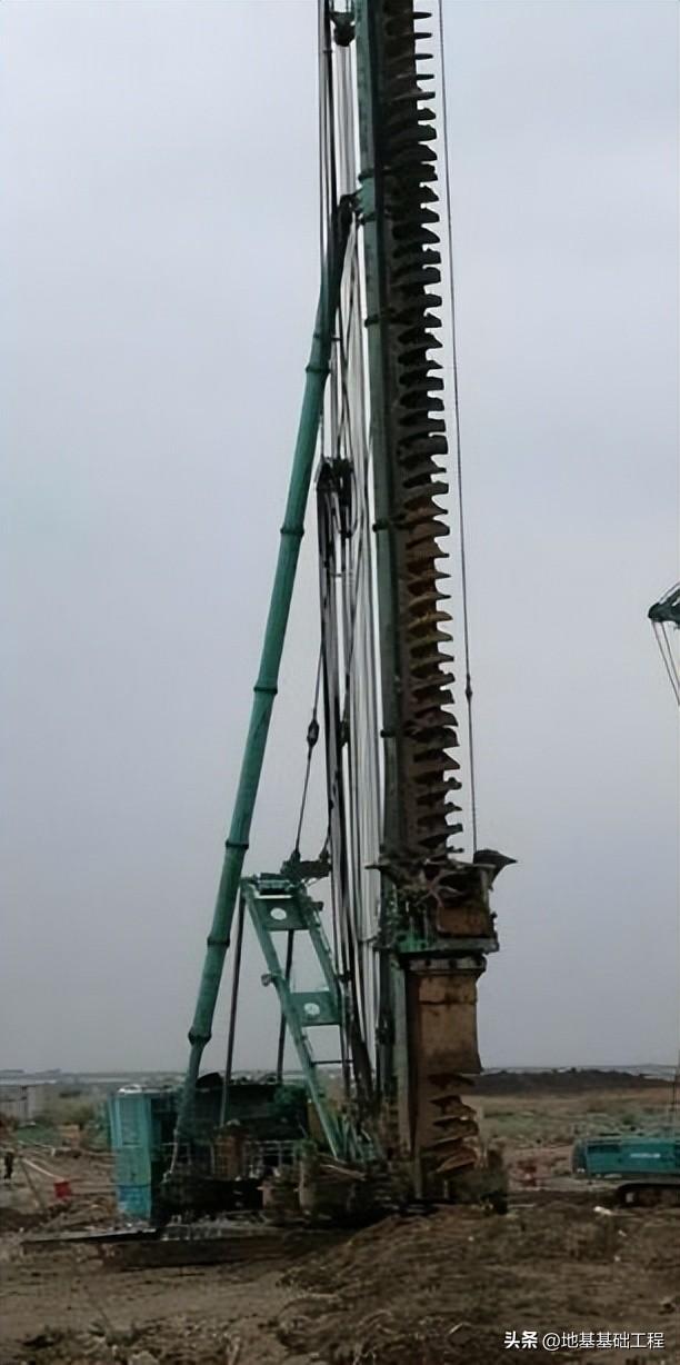 长螺旋钻具提升1、当长螺旋钻进穿过软弱地层后,将套管与套管动力头分离,使长套管留在孔内继续护壁。
