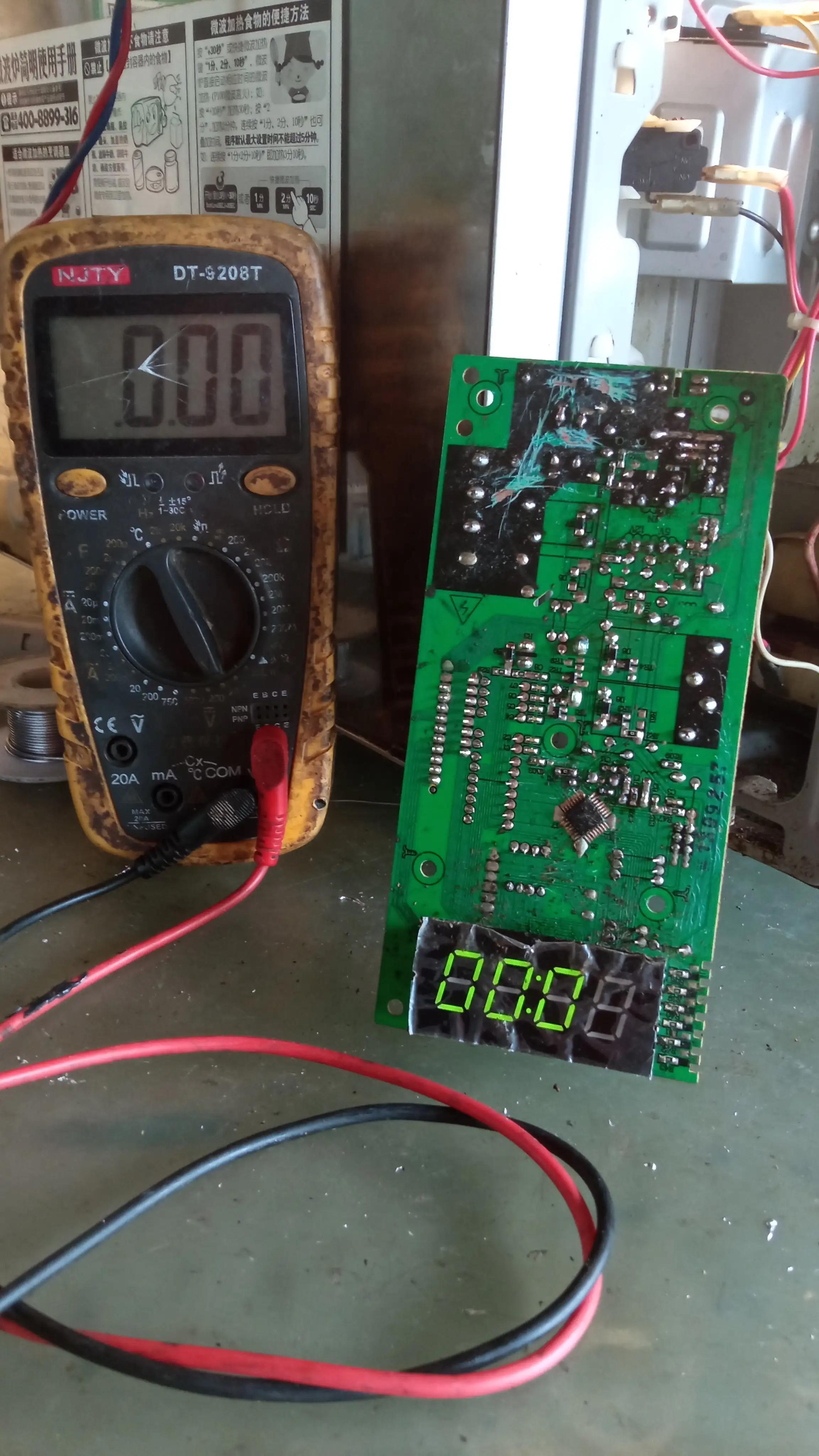 今天中午大学生创业园一餐饮老板送个美的微波炉来修,老板说急用。故障为电脑显示板时而正常时而不正常。