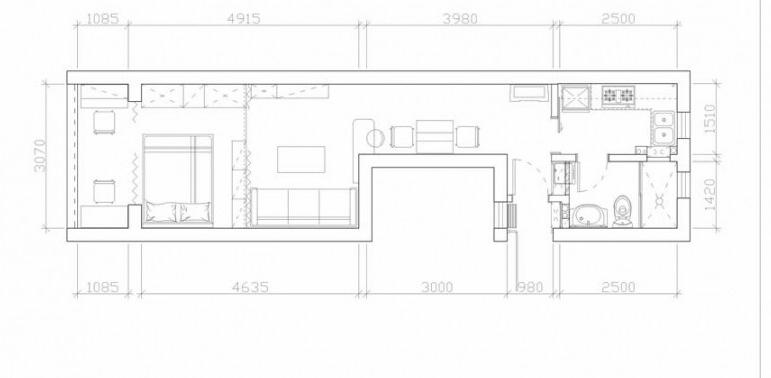 以下就是本套天山四村小区40平米一居室房子的户型图。