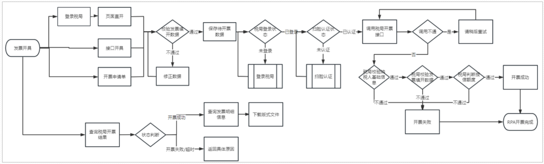 在发票开具和勾选抵扣业务中,需要与多个系统打交道,比如通过税局的系统开票、查验、抵扣认证;通过银行、财政等系统,获取非税票据信息。全流程自动化闭环时,有的企业也会选择第三方通道系统一次性完成发票业务的对接,相当于发票系统外包。