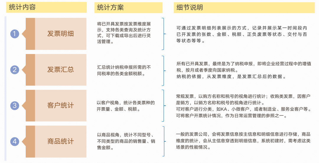 发票系统的业务范围主要包括下表所示的几部分:
