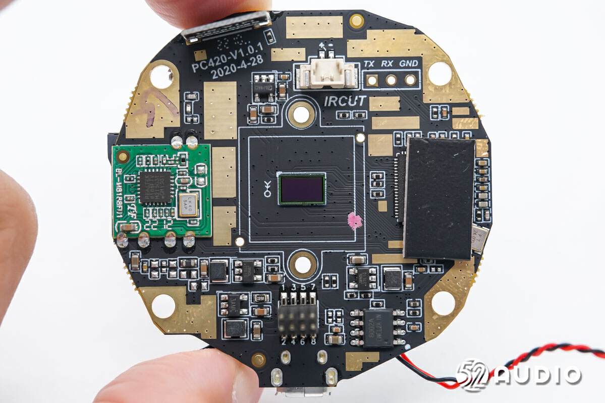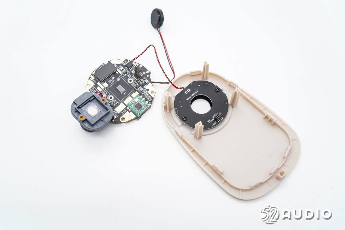 卸掉螺丝,取出红外LED灯小板和麦克风,Nooie Baby Cam儿童监护器主要电路一览。