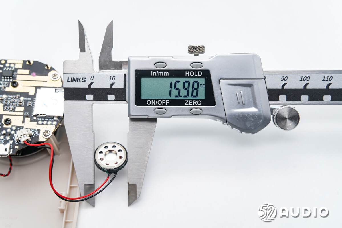 经我爱音频网实测,扬声器尺寸约为16mm。