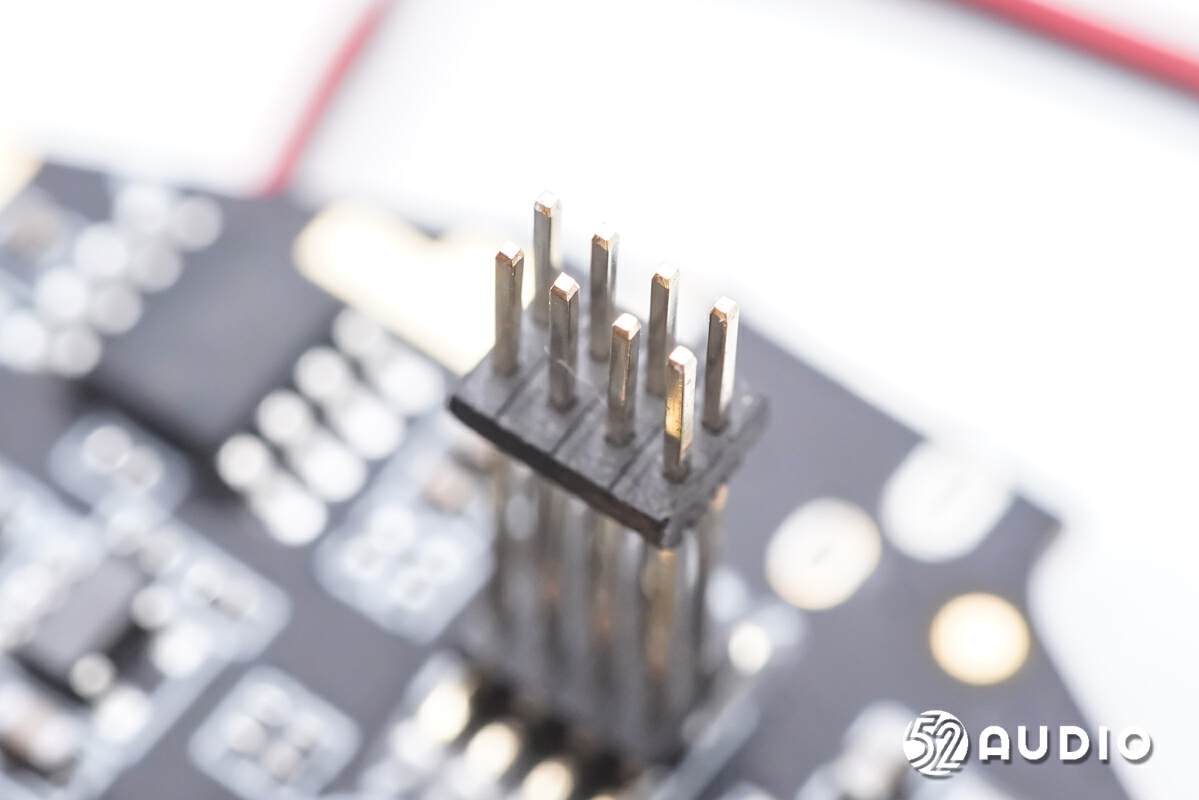 连接红外LED灯小板的插针特写。