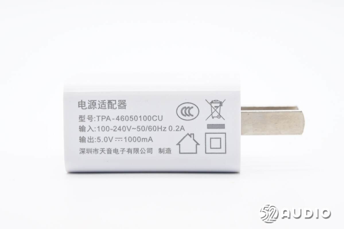 电源适配器型号:TPA-46050100CU,输入:100-240V~50/60Hz 0.2A,输出:5V-1000mA,深圳市天音电子有限公司制造。