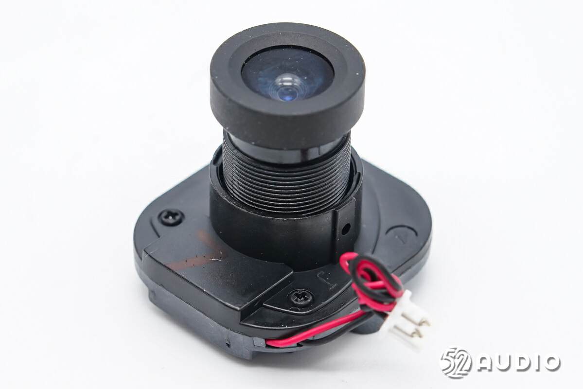 摄像头光学镜头结构特写,导线通过插座连接到主板。