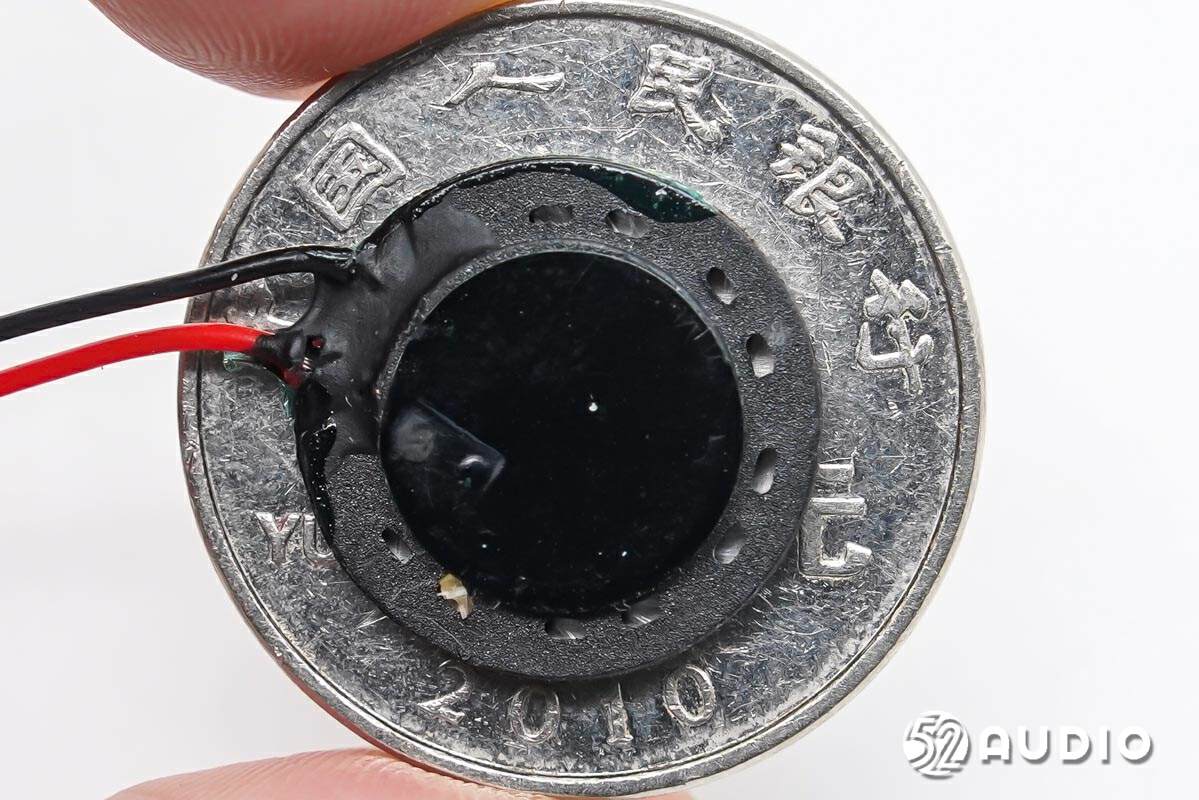 扬声器与一元硬币大小对比。
