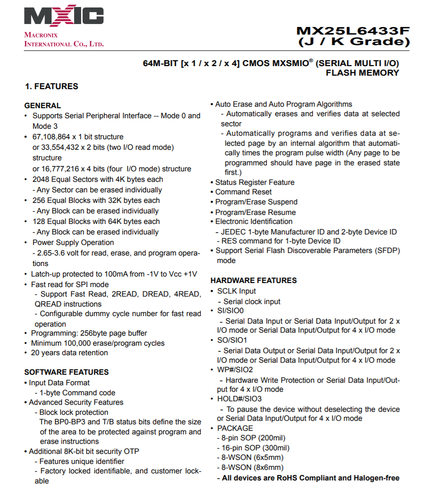 MXIC旺宏MX25L6433F详细资料图。