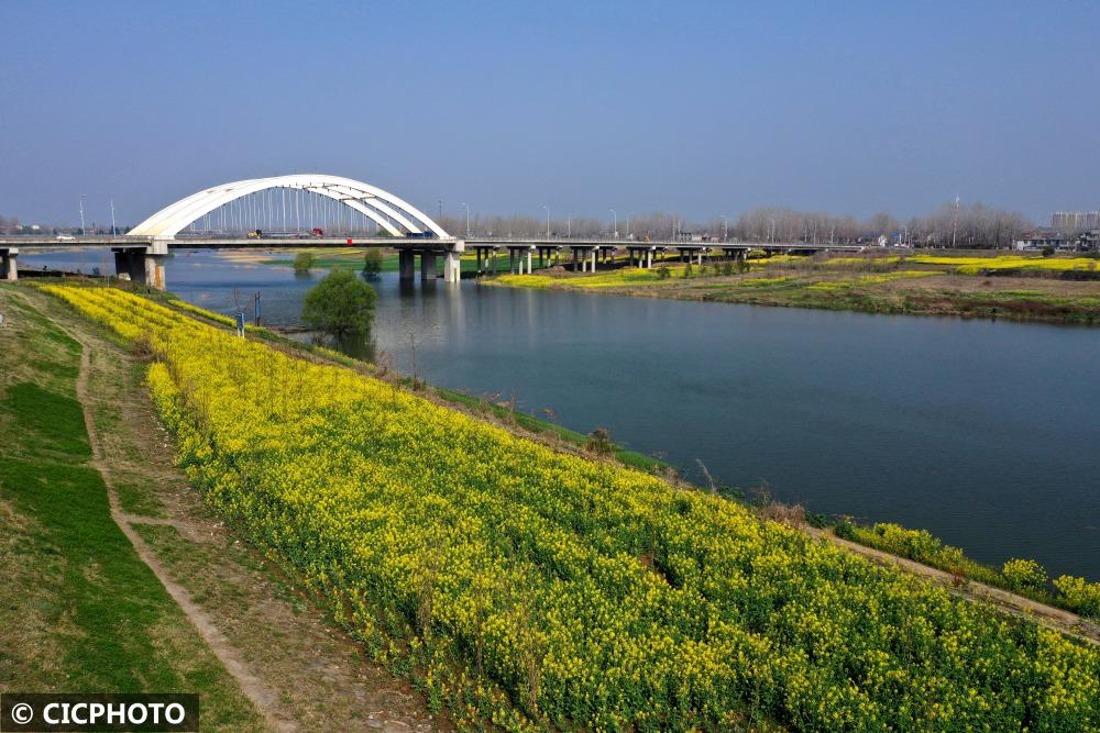 ↑2022年3月23日在涡河安徽省亳州市蒙城县城区段岸边拍摄的景色。CICPHOTO/胡卫国 摄