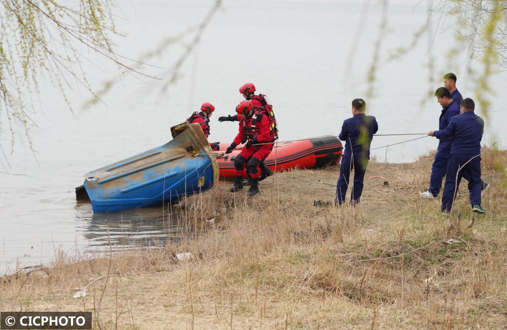 ↑2022年3月22日,志愿者在河北省邢台市内丘县鹊山湖打捞湖面漂流物。CICPHOTO/刘继东 摄