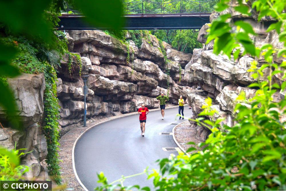 ↑2022年8月7日,市民在河北省秦皇岛市海港区人民公园里跑步。CICPHOTO/郭楠 摄