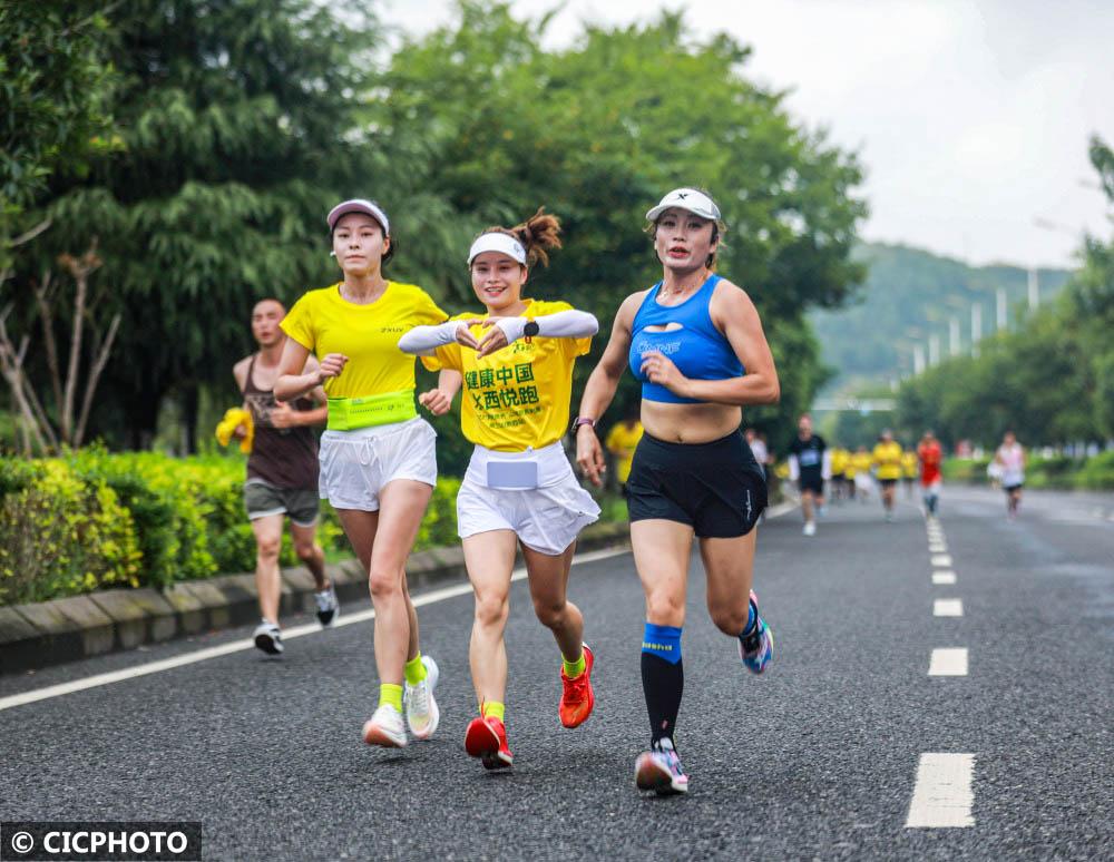 ↑2022年8月6日,贵州省黔西市文峰街道,市民在参加“健康中国 水西悦跑”活动。CICPHOTO/周训超 摄