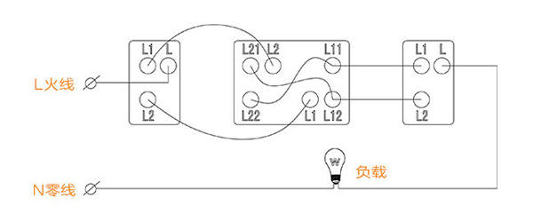 b.如里插座不用开关控制,其开关只将控制灯具,那么其接线方法为:把把火线接入开关的L接线端子,将开关的L1接线端子与灯头的一个接线端子相联接,把零线接入灯头的另一个接线端子,开关与灯形成一个回路。再将火线接入两孔插座的L接线端子,将零线接入插座的N接线端子,两孔插座成为另一个回路。