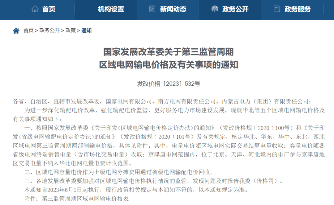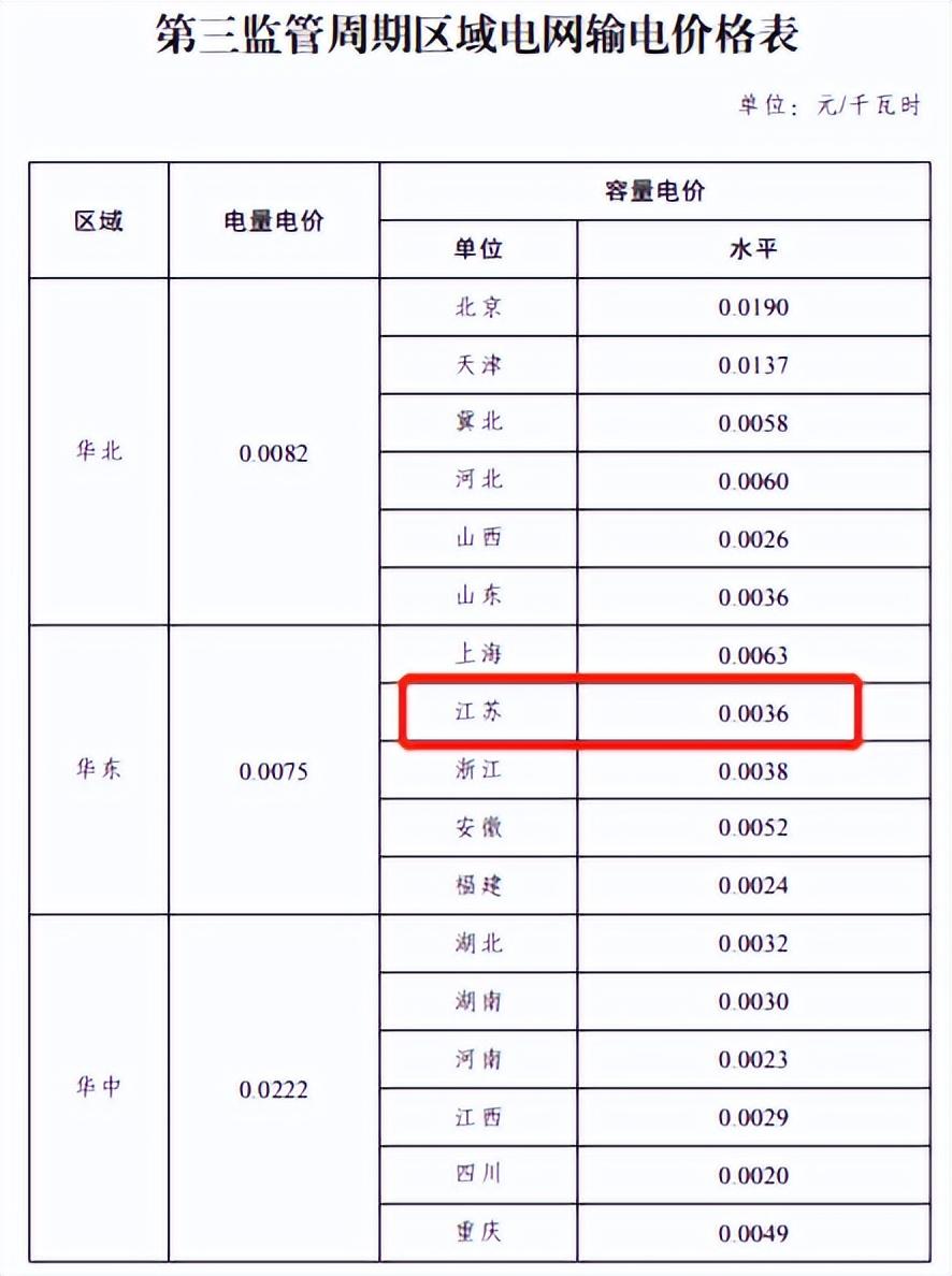 1、核定华北、华东、华中、东北、西北区域电网第三监管周期两部制输电价格,具体见下图。