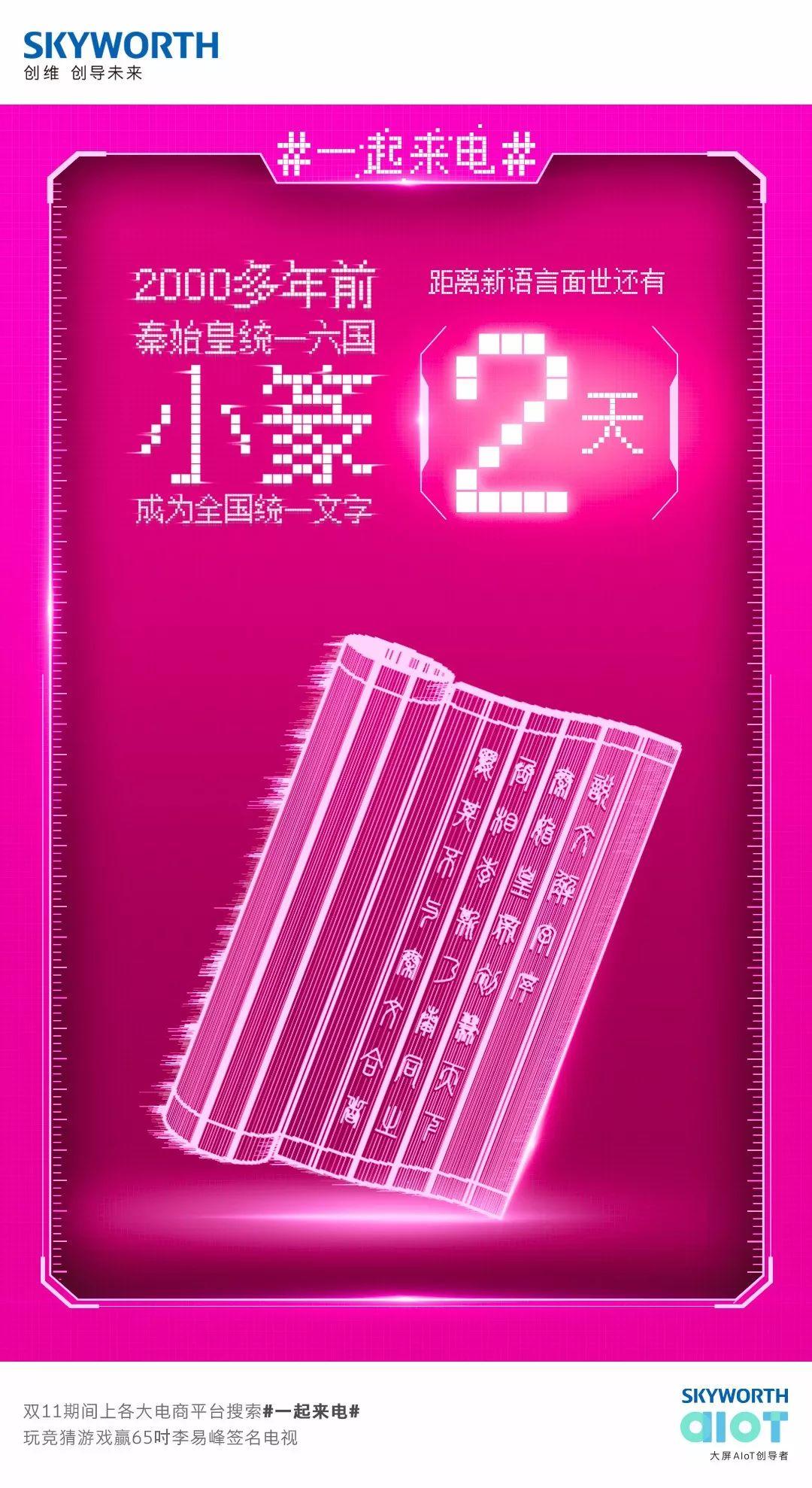 创维电视从一开始,就用语言的进化历程制造了悬念。正像新语言倒计时海报所言,语言都是为了能更好的沟通,让世界变得更美好,能再向前一步。