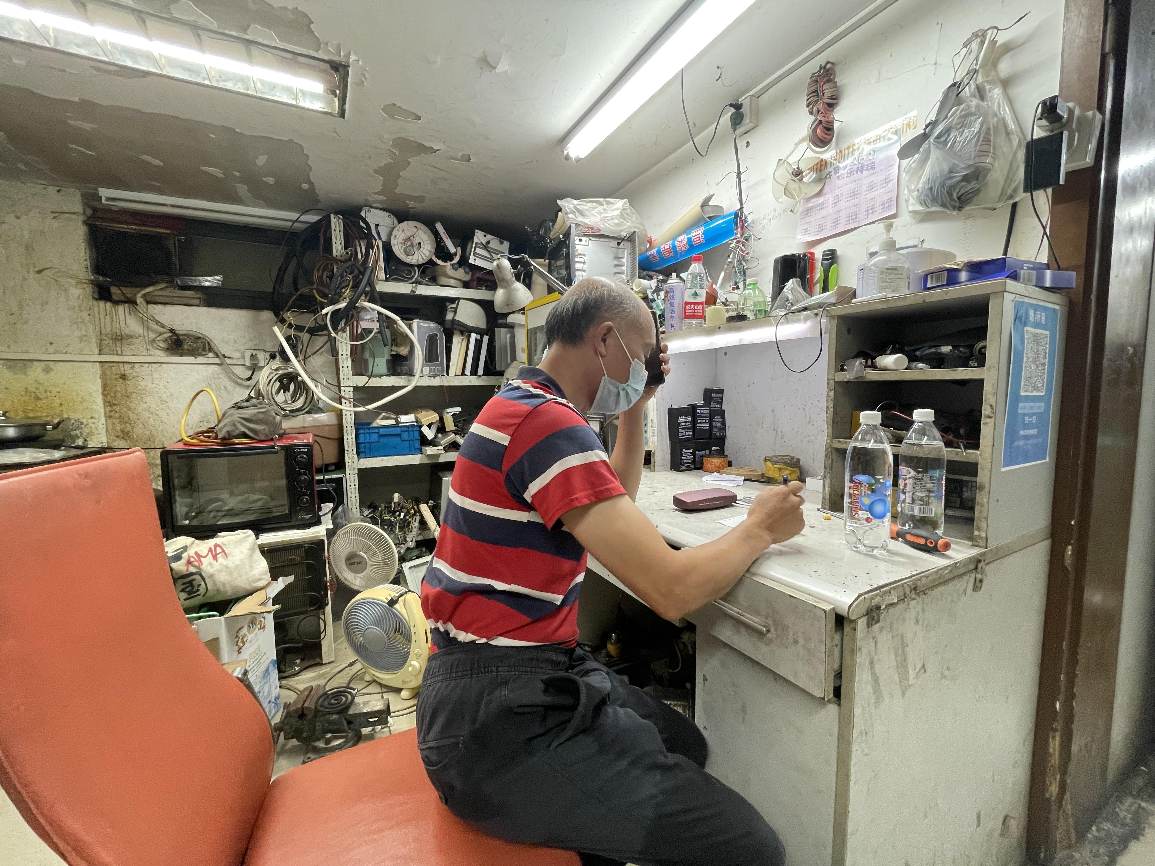 官师傅的客户并不局限于黄浦区。不少老上海都相信中央商场的口碑,毗邻黄浦区的部分居民家里有电器坏了,还是会第一个想到打这个电话。由于天气炎热,当骑到用户家时,官师傅的衣服后背已经湿了一大片。